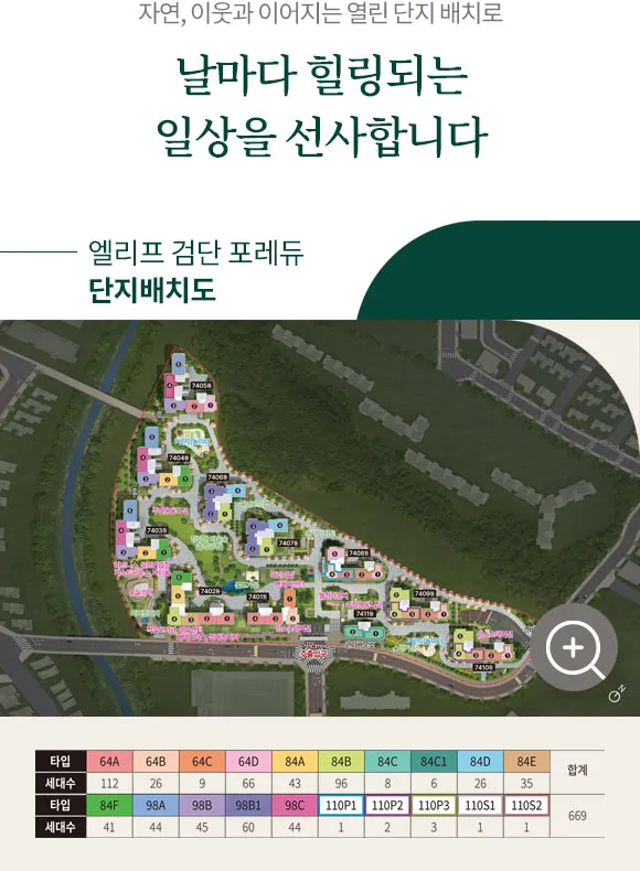 - 상기 단지배치도는 제작과정상 오류가 있을 수 있으므로 청약 및 계약 시 반드시 확인하시기 바랍니다.